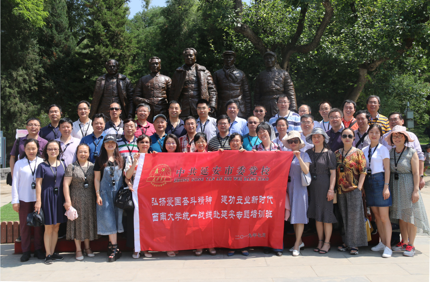 7月19日—21日,Betway必威西汉姆联官方网站统一战线赴延安开展“弘扬爱国奋斗精神 建功立业新时代”专题培训。学校各民主党派基层组织主副委、统战团体负责人、党外代表人士、青年党外知识分子、党委统战部干部共计40余人参加培训。