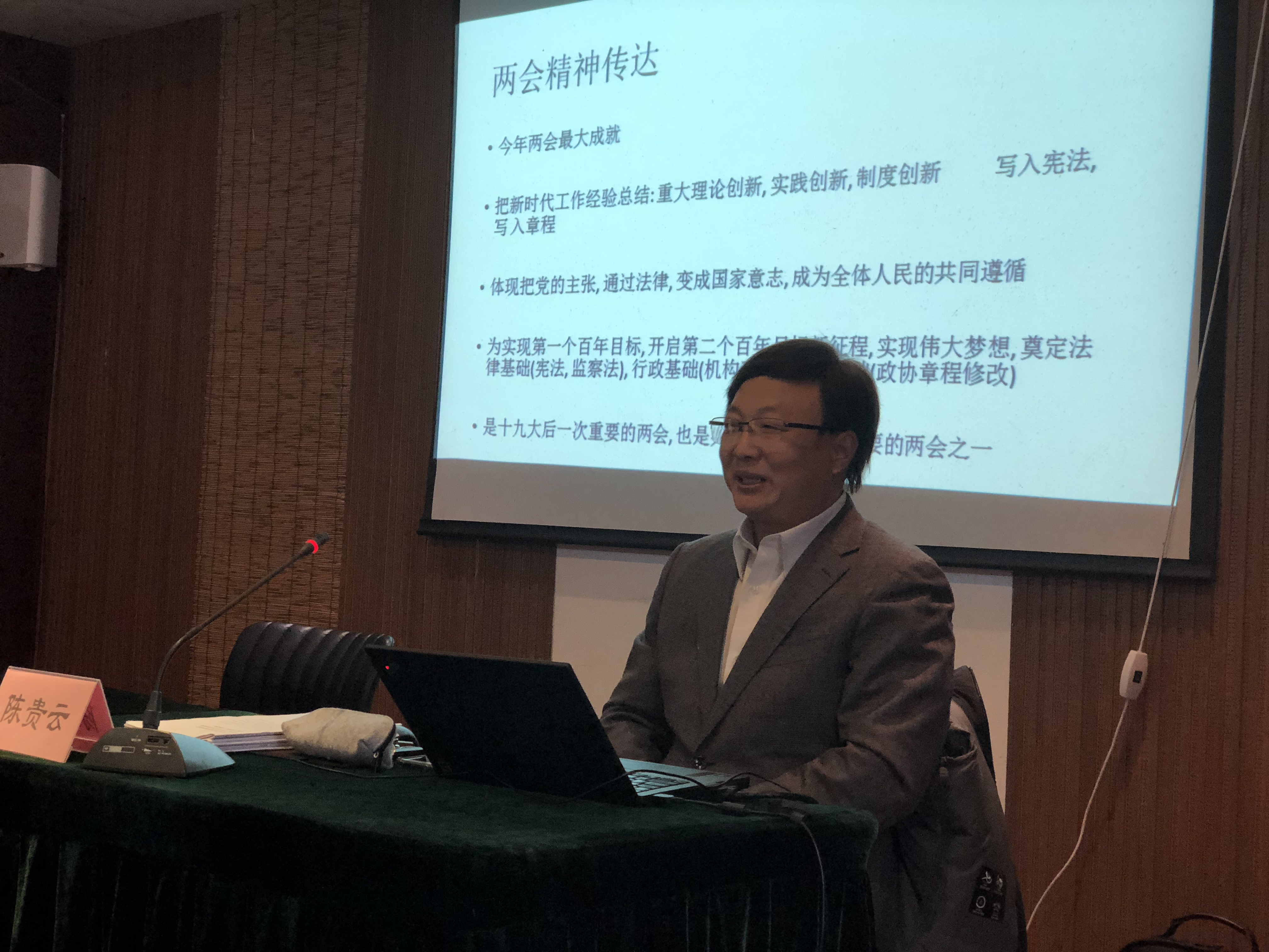 会上,陈贵云主委在简要介绍大会情况后,结合自己过去10多年参加全国人民代表大会和全国政协会议的感受和认识解读了今年政府工作报告的工作亮点,并回应了大家关注的热点问题。陈贵云主委还向大家传达了习近平总书记在全国“两会”期间的系列重要讲话精神。