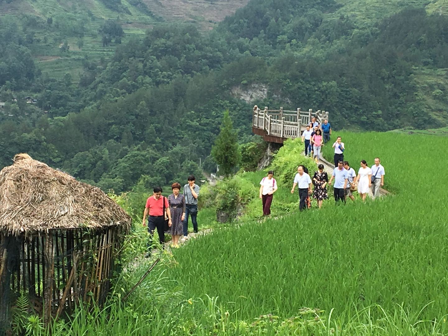 总支党员们还来到了酉阳花田乡,听取了花田乡乡长的介绍,在对该地浓厚的民族风情和独具魅力的梯田风光称赞有加的同时,就当地的旅游、文化、生态一体的综合规划提出了相应的意见与建议。当地的土家族大姐在大家的邀请下即兴演唱了当地民歌,并激发了总支党员歌唱家刘春平的“歌性”,为大家演唱了多首民歌,也充分展示了致公党员的风采。
