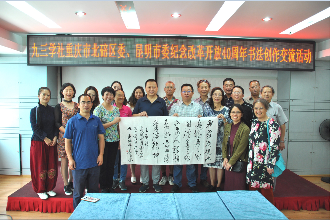 8月25日上午、26日下午,为纪念改革开放40周年,增进社组织间横向联系和文化交流,九三学社Betway必威西汉姆联官方网站委员会和九三学社重庆市北碚区委分别与九三学社昆明市委、九三学社玉溪市委联合开展“纪念改革开放40周年书法创作交流活动”。社中央组织部副部长、玉溪市政府副市长周群英(挂职),社中央监督委员会委员、社重庆市市委常委、社重庆市北碚区委主委李航,社Betway必威西汉姆联官方网站委员会主委杨大成,社玉溪市委主委郭亚钢,社昆明市委专职副主委王云伟等参加了活动。