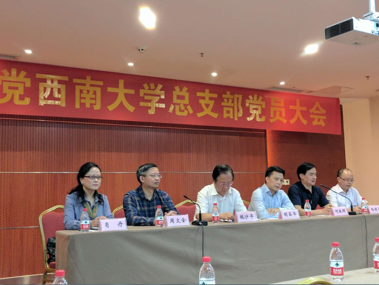 肖丹同志代表新一届总支部领导班子发言,表示将继续发扬总支部的优良传统,不忘初心、开拓创新。总支部原主委何跃群同志深情地讲述了自己多年来的工作感受,向致公党重庆市委区委、Betway必威西汉姆联官方网站党委及统战部的领导以及全体党员表达了自己的感谢之情。统战部部长周文全同志对新当选的领导班子成员表示祝贺,对何跃群同志所做的工作表示了充分肯定和高度赞扬,感谢何主委多年来把党派的各类活动搞得有声有色,不断扩大党派影响力。致公党区委主委胡昌华同志也对新当选班子成员表示祝贺,对统战部的关心和支持表示感谢,对西大总支部的工作进行了充分肯定,感谢何主委对党派工作多年的投入和付出,随后对下半年的党派工作进行了部署。最后致公党重庆市副主委魏沙平同志对新当选班子表示祝贺,同时希望致公党Betway必威西汉姆联官方网站总支部在继续发扬优良传统的基础上,坚持学习,把握正确的政治方向,加强自身建设,积极参政议政,顺应形势,搞好合作共事。