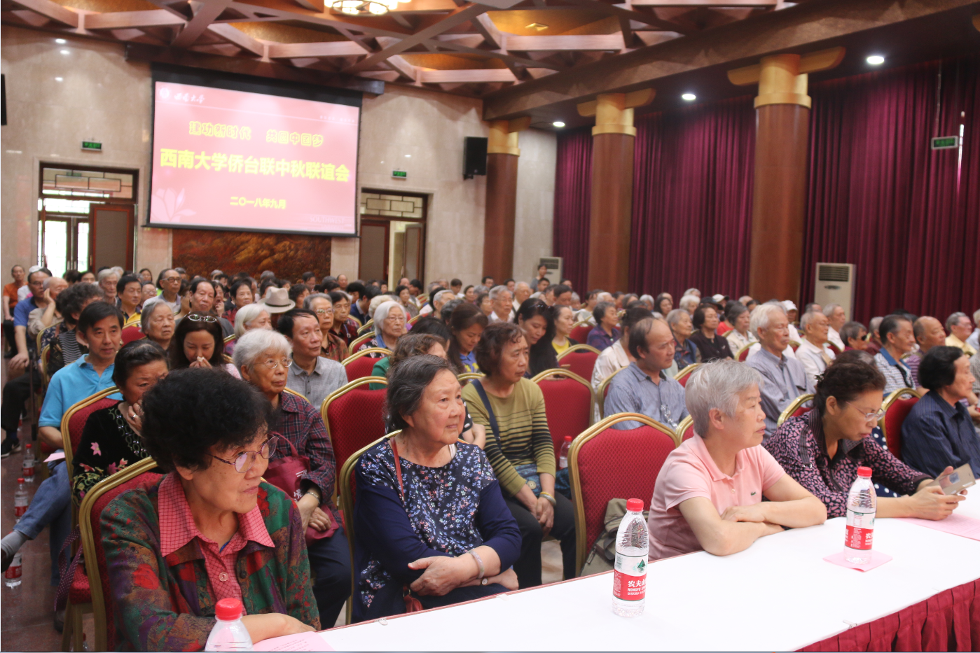秋风送爽,金桂飘香,9月21日下午,学校侨台联在东方红会议厅举行以“建功新时代 共圆中国梦”为主题的2018年中秋联谊会,校长张卫国出席并致辞,市侨联副主席、校侨联主席张自力,校党委统战部部长周文全、副部长何定龙以及近200名侨台联会员参加会议。会议由学校台联会长涂涛主持。