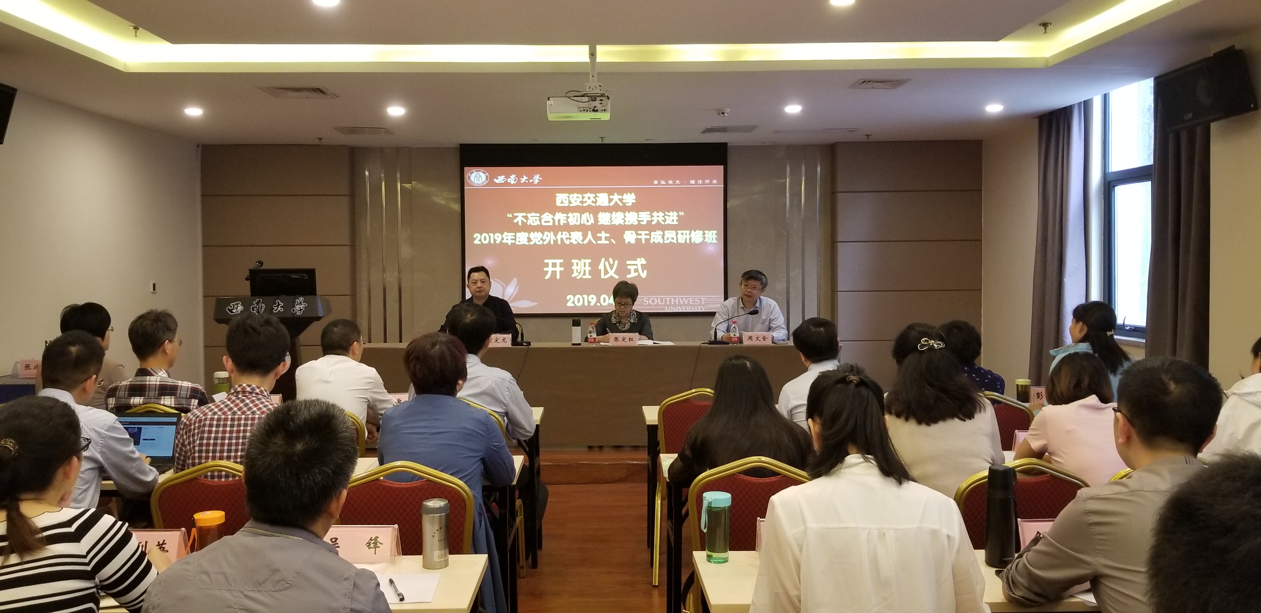 4月19日,西安交通大学2019年度党外人士、骨干成员培训班在Betway必威西汉姆联官方网站社会主义学院开班,西安交大党委常委、统战部部长张定红,学校党委统战部部长、社会主义学院教务长周文全同志出席开班式并讲话。开班式由党委统战部副部长何定龙主持。