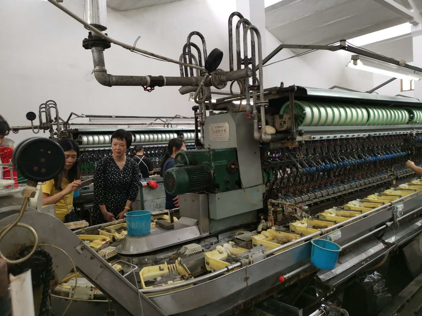 民进会员在天虹丰谷丝厂缫丝车间参观