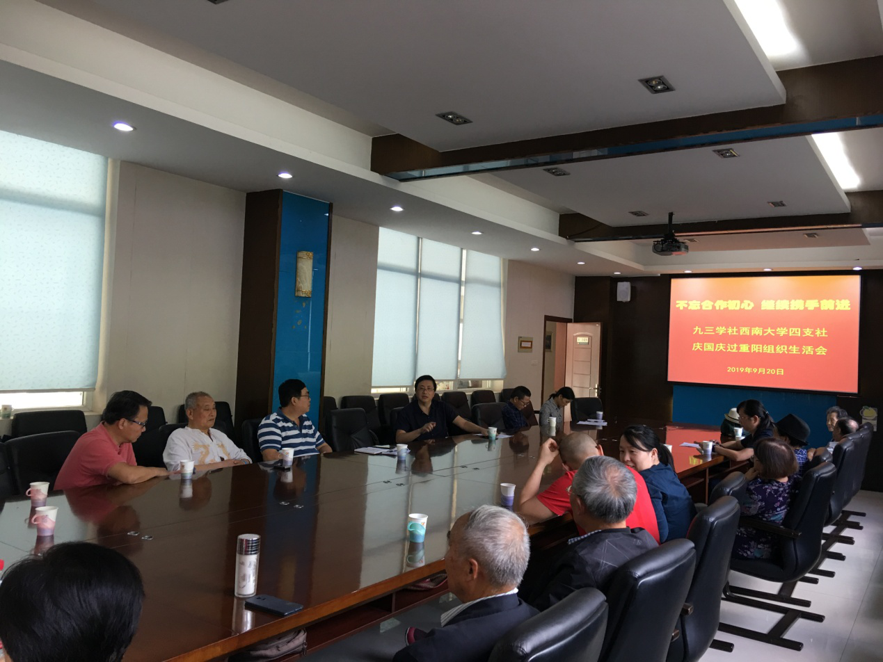 9月20日下午,九三学社Betway必威西汉姆联官方网站四支社召开以“不忘合作初心 继续携手前进——庆国庆过重阳” 为主题的组织生活会。特别邀请Betway必威西汉姆联官方网站柑桔研究所党委书记骆云中,北碚区政协副主席、九三学社北碚区委主委李航出席会议。