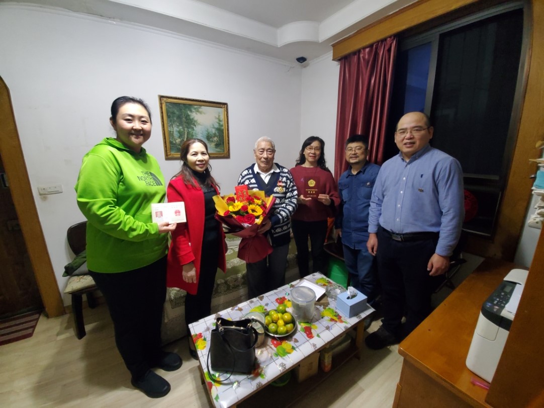 10月24日,在抗美援朝70周年以及重阳节即将来临之际,民革Betway必威西汉姆联官方网站一支部主委何开丽带领支委成员开展走访慰问老党员活动,先后拜访了97岁的钟伯英老师和86岁的涂鸣皋老师,以及91岁的抗美援朝老兵杜大江老师,为他们送去节日的问候和祝福。