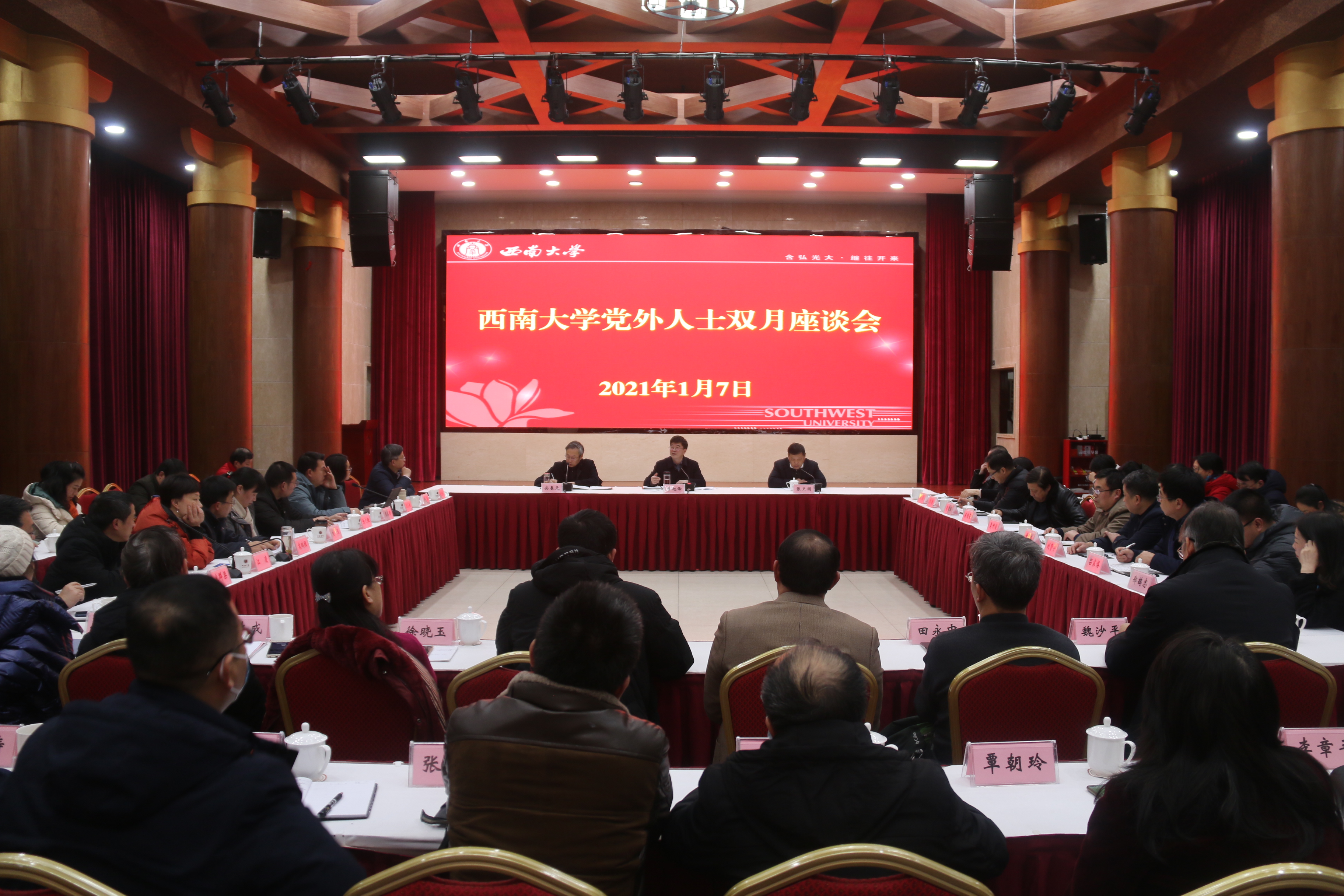 1月7日下午,学校召开党外人士双月座谈会,通报学校2020年主要工作和2021年工作思路,交流各民主党派2020年工作。党委书记李旭锋,校长、党委副书记张卫国出席会议,党委副书记、党委统战部部长安春元主持。
