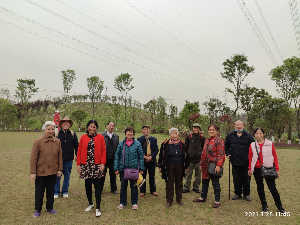 老社员们乘公交车沿嘉陵江沿江公路直到水土高新区。沿途只见山清水秀,不是江南胜似江南。真是一座座金山银山。到达目的地后,社员门先后参观了水滴桥水系公园、飞马李子坡公园、牡丹园等,园区建设充分体现了山地公园的特色,突出了“水土风格”。