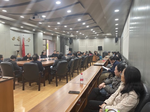 3月25日下午,致公党Betway必威西汉姆联官方网站基层委员会在学校第二行政楼三楼会议室召开专题组织生活会,会议由肖丹主委主持。致公党重庆市委会副主委魏沙平、学校党委统战部副部长何定龙应邀出席。