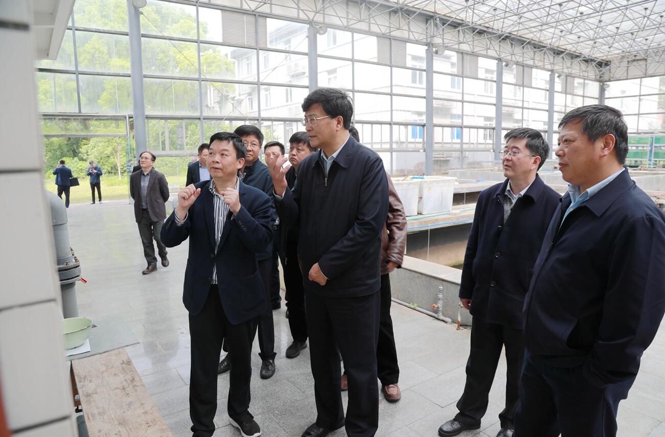 王炯等人首先到淡水鱼类生殖与发育教育部重点实验室实地考察学校开展种质创新、提升科研创新能力情况。重庆市政协委员、学校生物学研究中心主任夏庆友教授就长江上游种质创制科学装置建设背景、建设意义、建设规划、建设目标、实施方案及建设进展等向王炯等人作详细汇报。农工党党员、淡水鱼类生殖与发育教育部重点实验室主任王德寿教授就罗非鱼种质创制、产研应用等方面作现场汇报。