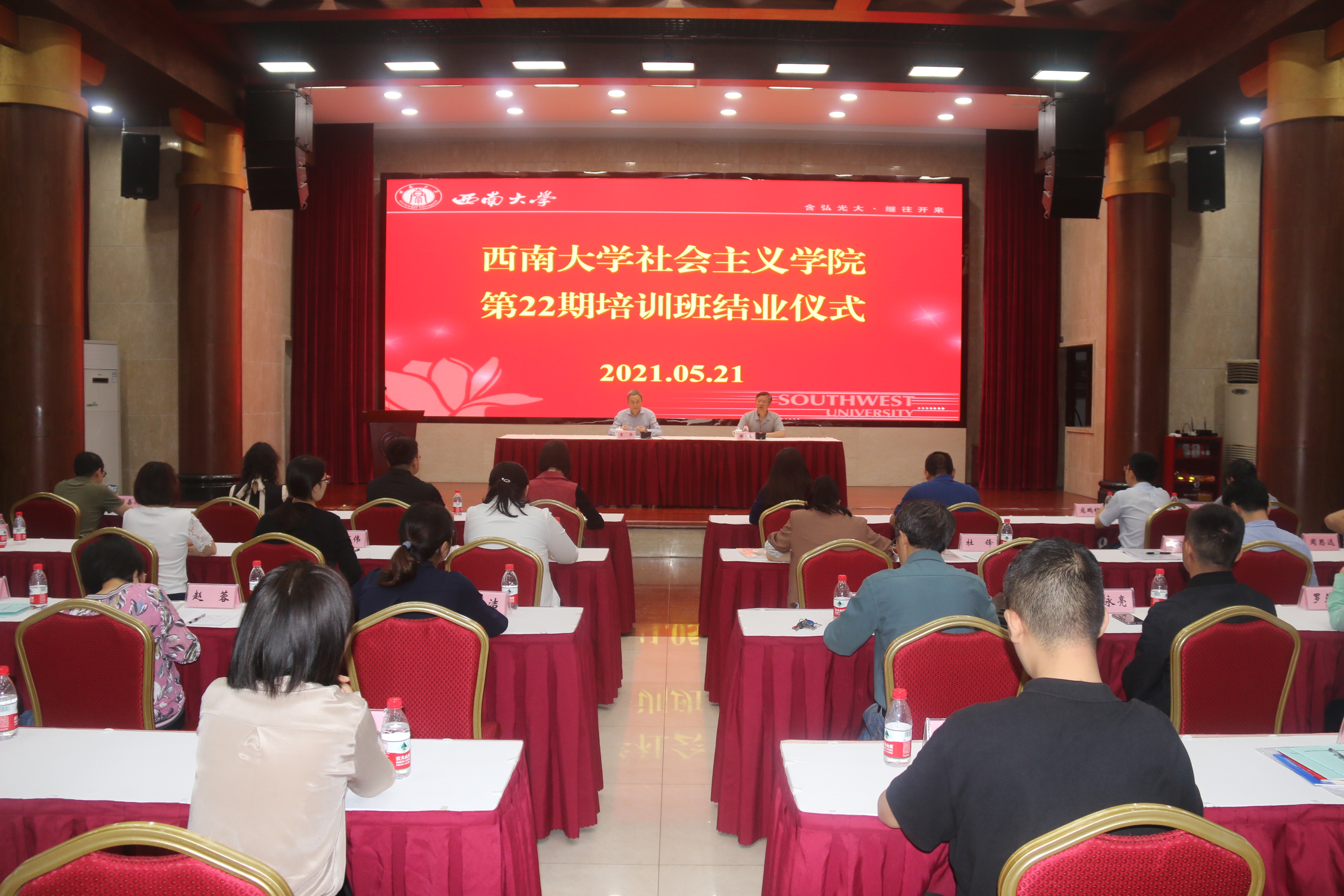 5月21日下午,学校举行社会主义学院第22期培训班结业仪式。校党委副书记、纪委书记李华出席并讲话,为学员代表颁发了结业证书。党委统战部常务副部长、社会主义学院教务长周文全主持会议。