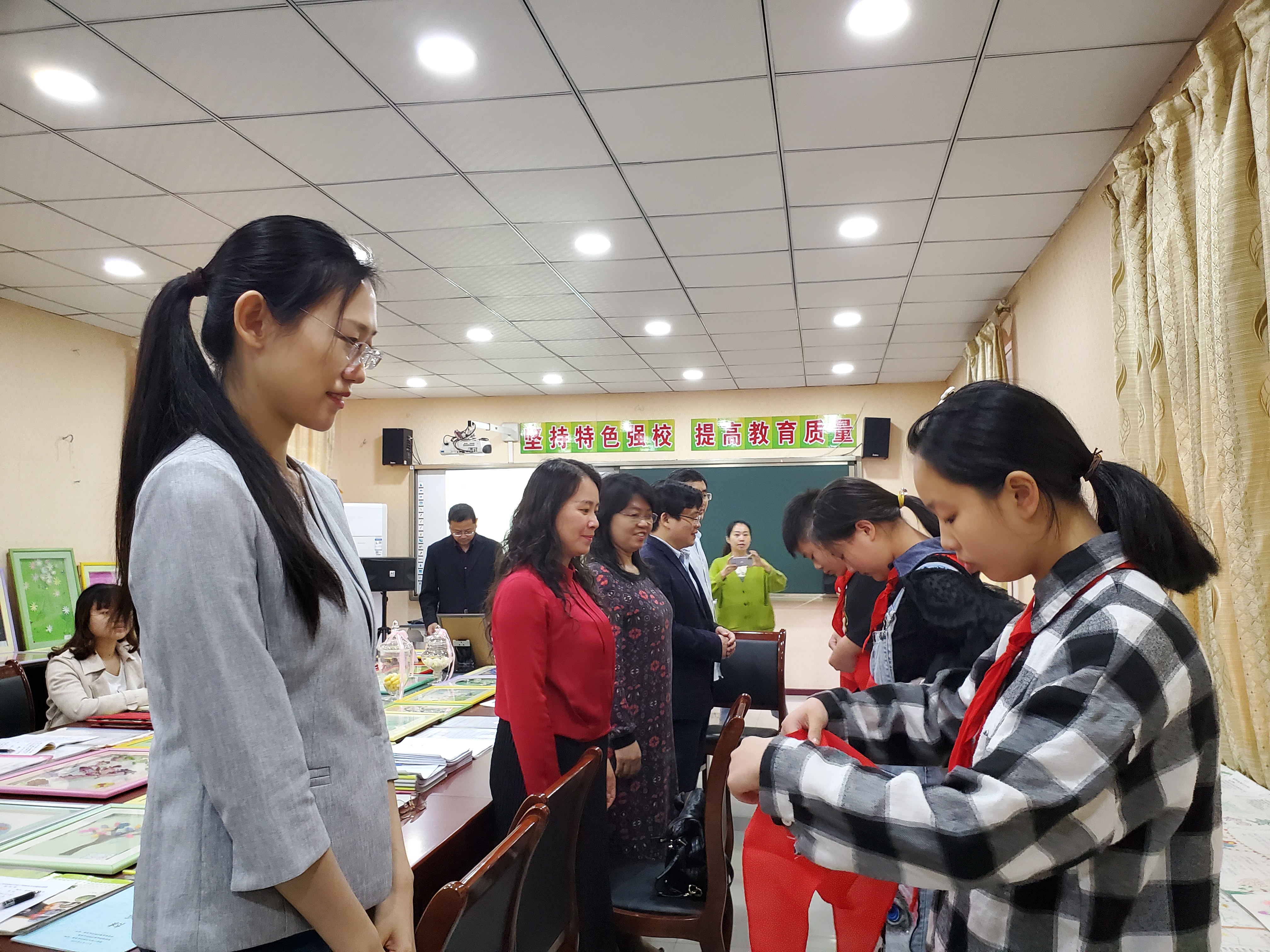 作为民盟基层组织,二支部将结合支部学科特点,与天成小学共同探讨将蚕桑文化融入课堂教学,建设特色课程体系的学科理论和实践路径,为支持乡村学校发展切实贡献力量。研讨会后,天成小学少先队员代表向支部委员们敬献红领巾,支部也向天成小学少先队员代表赠送了六一儿童节礼物。