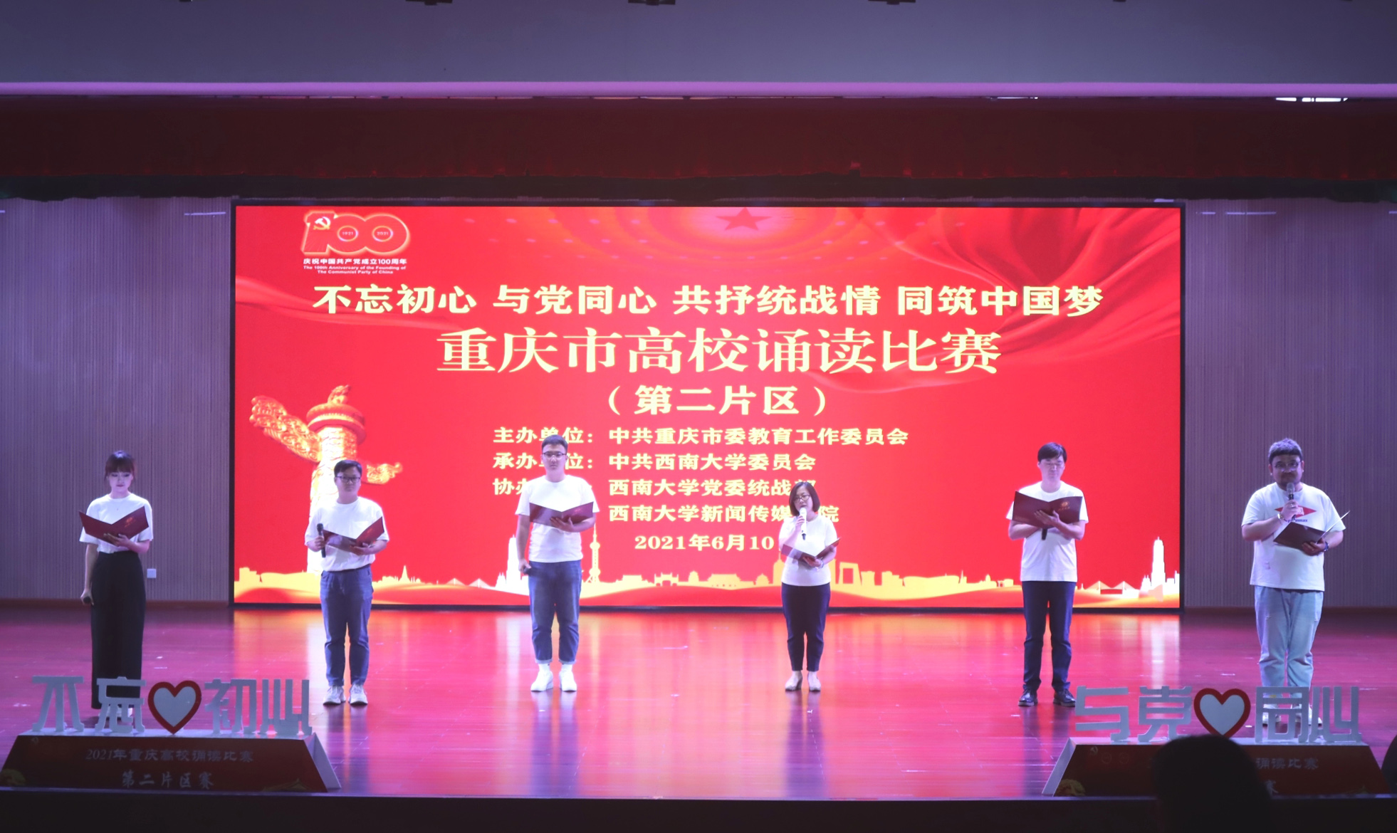 为庆祝中国共产党成立100周年,共同抒发统战情怀,增进统战成员友谊。6月10日下午,由市委教育工委主办、Betway必威西汉姆联官方网站党委承办、党委统战部和新闻传媒学院协办的“不忘初心 与党同心 共抒统战情 同筑中国梦”2021年高校诵读比赛第二片区赛在学校圆顶报告厅举行。市委统战部和市委教育工委相关处室负责人、第二片区高校统战部负责人出席活动。来自第二片区的16所高校欢聚缙云山下、嘉陵江旁,以赛会友、以赛传情,共同抒发心中的爱党爱国热情。