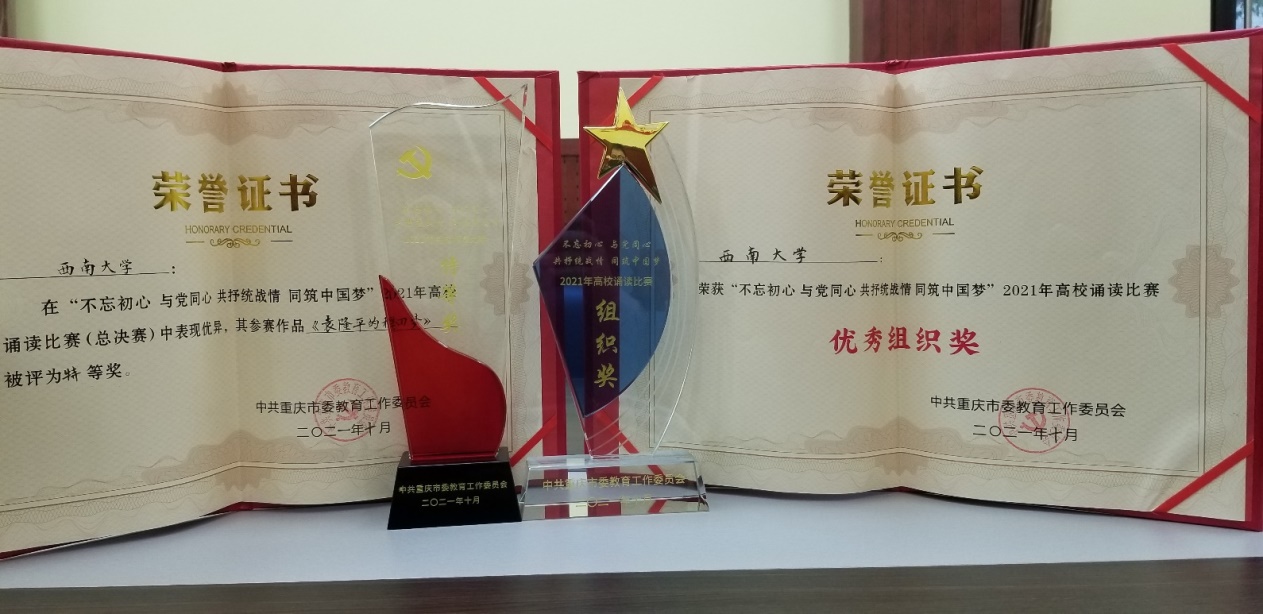 学校荣获2021年重庆市高校诵读比赛特等奖和优秀组织奖