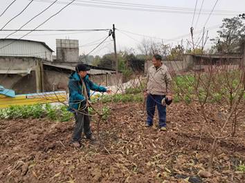 1月9日,应九龙坡区西彭镇果树专业户何川枫邀请,民建Betway必威西汉姆联官方网站二支部李晓林和苏承刚两位老师积极前往开展科技服务工作助力乡村振兴,免费进行了果树冬季管理技术指导。上午10点两位专家到达果园,就果园幼树的冬季管理工作,对管理员进行现场示范培训。开展了桃、李和葡萄的幼树整形、修剪技术指导,传授了果树冬季施肥的方法和数量、冬季清园、树体保护等方面知识,进行一一讲解和现场示范,整个过程力求准确简单易学易懂,使管理员及时掌握果园冬季管理技术,为顺利完成果园冬季管理工作打下了良好基础,受到园主和管理人员好评。