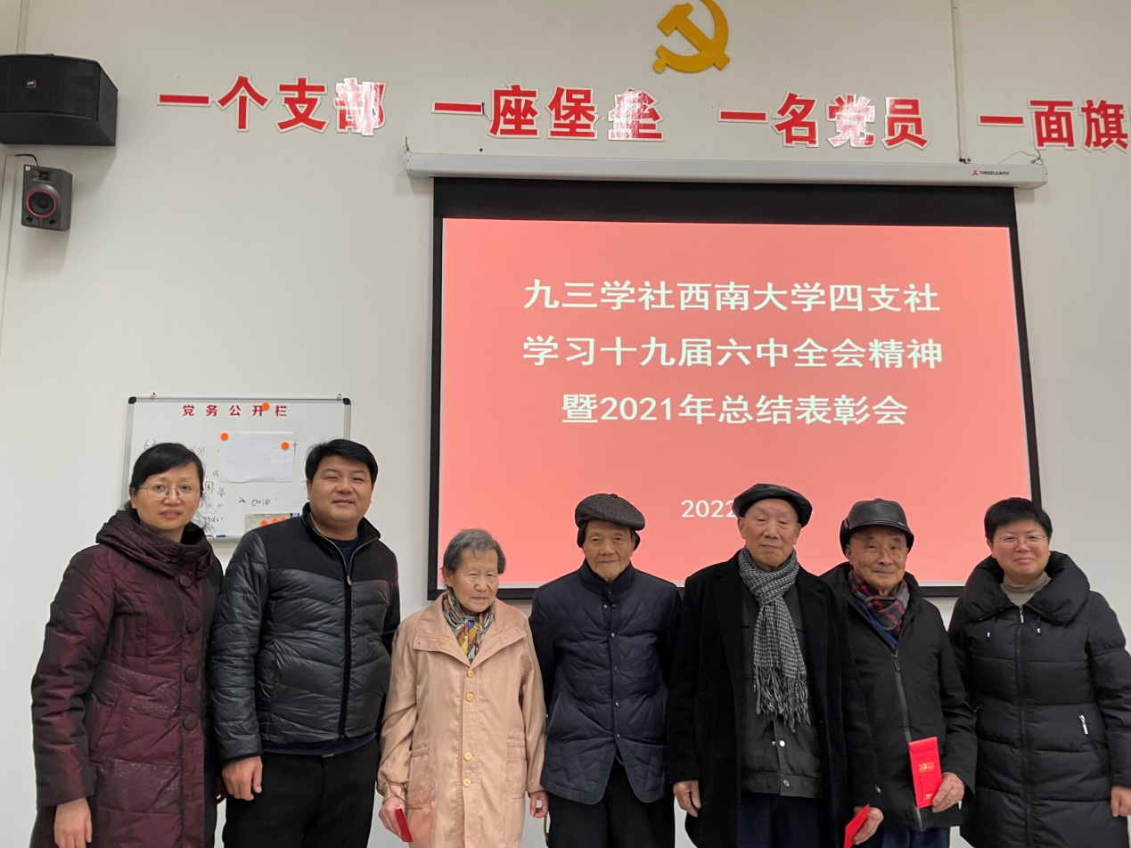 1月14日下午,九三学社Betway必威西汉姆联官方网站四支社在柑桔所会议室召开组织生活会,组织全体社员集中学习十九届六中全会精神,并对2021年工作进行了总结表彰。会议由胡军华主委主持。
