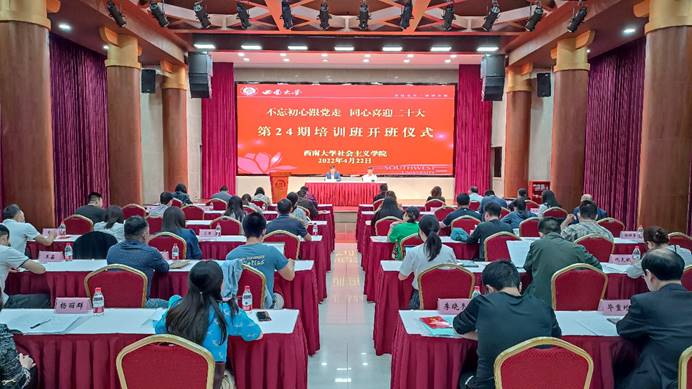 为深入学习贯彻习近平新时代中国特色社会主义思想,进一步巩固共同思想政治基础,认真落实学校“迎接学习宣传党的二十大主题宣传教育活动”任务,4月22日下午,学校社会主义学院“不忘初心跟党走 同心喜迎二十大”第24期培训班顺利开班。学校党委副书记潘洵,党委统战部常务副部长、社会主义学院教务长周文全,学校各民主党派基层组织负责人以及全体学员参加开班仪式。