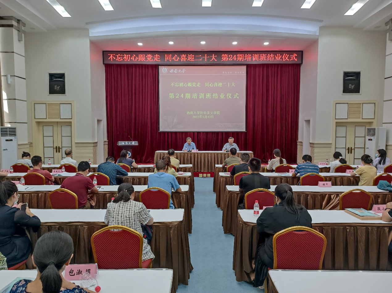 5月13日下午,学校举行社会主义学院第24期培训结业仪式。校党委副书记潘洵出席会议并讲话。会议由党委统战部常务副部长、社会主义学院教务长周文全主持。