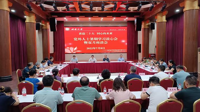 7月8日上午,学校召开“喜迎二十大,同心向未来”2022年党外人士暑期学习谈心会暨双月座谈会。学校党委书记李旭锋主持会议并讲话,党委副书记、统战部部长安春元领学习近平总书记重要讲话精神和统战工作有关文件并通报学校2022年上半年主要工作。