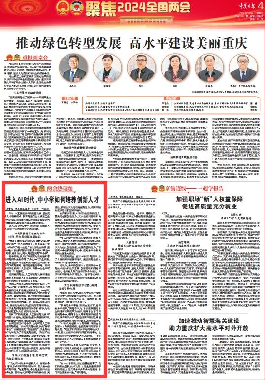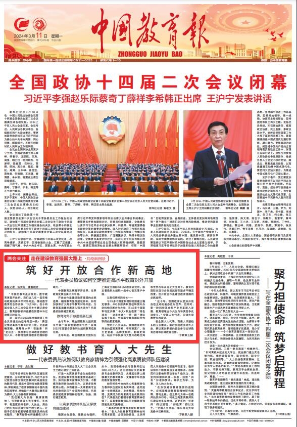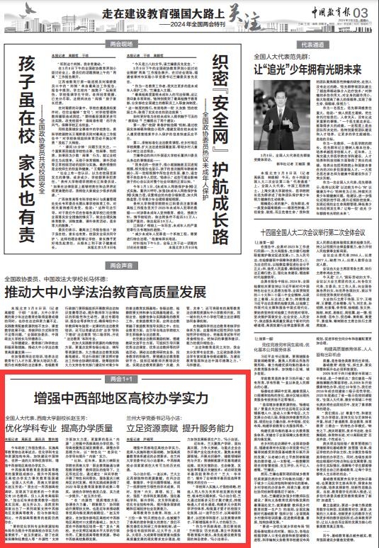 全国政协十四届二次会议、十四届全国人大二次会议分别于3月10日、3月11日圆满完成各项议程,在京胜利闭幕。两会期间,全国人大代表、北碚区政协副主席、民革北碚区委会主委、学校副校长赵玉芳赴京履职,聚焦教育、科技、环境保护等领域积极建言献策,发出响亮“西大声音”,受到各级各类媒体广泛关注,部分报道节选如下: