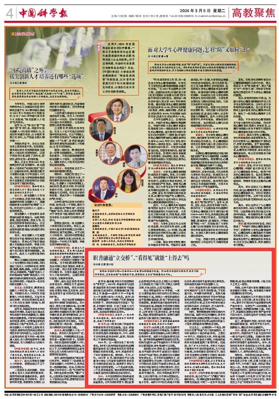 从实际出发,着力打通束缚新质生产力发展的堵点卡点,需要深化科技体制、教育体制、人才体制等改革。“在教育、科技和人才机制建设上持续发力,通过深化改革,形成各主体各方面各环节有机互动、协同高效的现代化创新体系,为加快发展新质生产力贡献教育力量。”赵玉芳说,将结合高等教育综合改革,积极对接国家重大战略需求和产业发展需要,优化材料和生物、人工智能等专业布局,加强生物育种、新材料、类脑研究等领域有组织科研,在完善拔尖创新人才发现和培养机制上多下功夫。