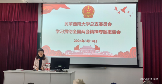 3月14日下午,民革Betway必威西汉姆联官方网站总支召开理论学习会,传达学习2024年全国“两会”精神。全国人大代表、民革北碚区委会主委、Betway必威西汉姆联官方网站副校长赵玉芳,民革北碚区委会专职副主委洪玲出席本次会议,30余名党员代表参加会议。