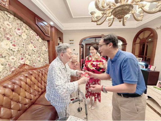 5月25日,民盟西大基层委员会主委肖国强、一支部主委蒋志红及盟员代表刘博勤、郝晓花一行,专程前往百岁老盟员徐炳旸老师家中看望慰问,代表组织送上鲜花和慰问品,并向徐老师致以诚挚的关怀与祝福。慰问过程中,肖国强主委与徐老师亲切交谈,详细询问了他的身体状况和生活近况,对他长期以来关心民盟事业、坚持学习的精神表示敬佩。徐老师对盟友们的到来表示高兴,热情地与大家拉家常,还关切地询问起盟内其他老同志的近况,言谈中流露出对民盟组织的深厚感情。虽已百岁高龄,徐老师仍然头脑清醒,每日阅读报纸、收看新闻,时刻关注民盟组织动态和社会时事,展现了老一辈盟员坚定的信念与家国情怀。徐老师的家人对民盟组织的牵挂和慰问深表感谢。