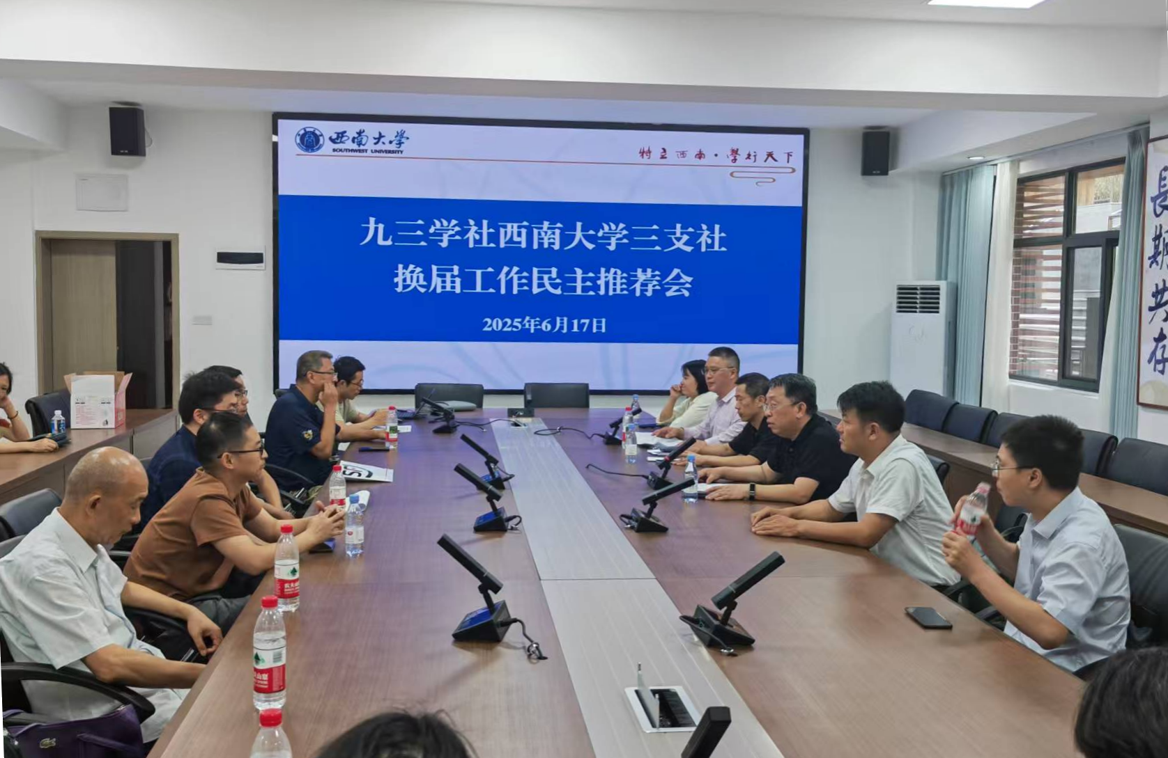6月17日下午,九三学社Betway必威西汉姆联官方网站三支社在同心楼举行基层组织换届工作民主推荐会,支社全体社员参加。九三学社北碚区委主委曹健、专职副主委刘林鹏、副主委宋群梁及专干杨川艳莅临指导工作。
