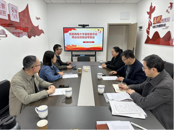 为深入学习贯彻全国两会精神,切实提升建言献策质量,做好两会期间信息报送工作,3月5日,民盟Betway必威西汉姆联官方网站基层委员会在同心楼会议室召开专题工作会,各支部主委和部分参政骨干盟员参会,会议邀请民盟北碚区委会专职副主委刘华、办公室主任何欣出席并做指导。