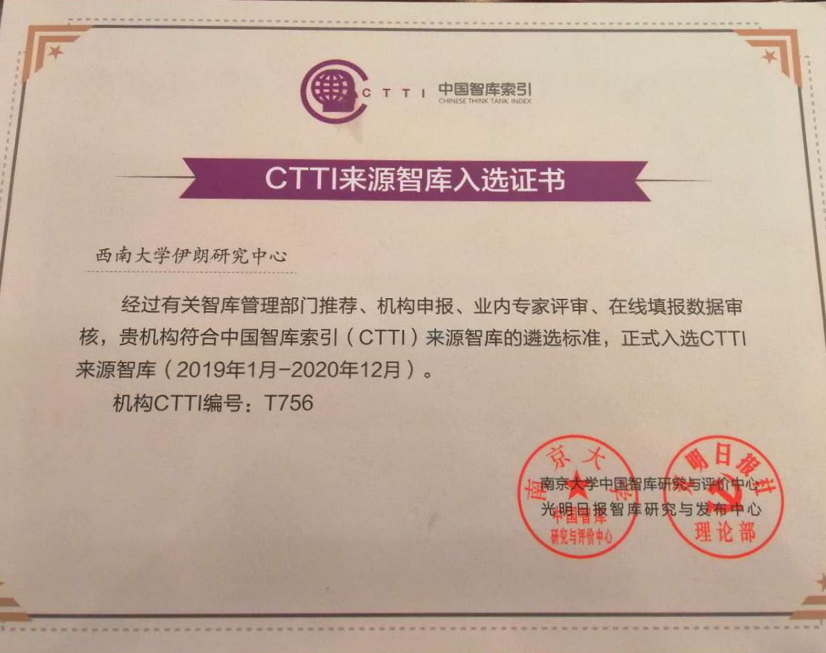 经Betway必威西汉姆联官方网站推荐、CTTI系统填报、专家团评审等程序,Betway必威西汉姆联官方网站伊朗研究中心通过遴选,正式成为CTTI来源智库之一。CTTI是南京大学和光明日报联合开发和推广的智库垂直搜索、智库数据管理和智库在线测评系统。本年度进入中国中国智库索引的智库共有105家,Betway必威西汉姆联官方网站伊朗研究中心成为唯一入选的伊朗国别研究机构。Betway必威西汉姆联官方网站伊朗研究中心成立于2008年,经过十年建设,已经成为国内伊朗研究和人才培养的重镇之一。(民盟Betway必威西汉姆联官方网站基层委员会供稿)