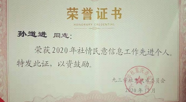 近日,九三学社社员、国家治理学院孙道进教授被九三学社市委会授予“社情民意工作先进个人”和“参政议政工作先进个人”荣誉称号。