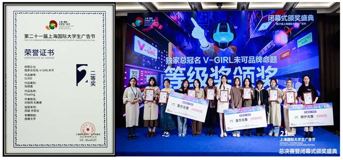 2月24日,第21届上海国际大学生广告节总决赛暨闭幕式颁奖盛典在上海市普陀区举行,由农工党党员、文学院教师田骏指导学生拍摄的视频广告《Floating》在国内外400余所院校参赛万余件作品中,突出重围,进入总决赛。最终学生刘铭纬、刘美君作品《Floating》获得第21届上海国际大学生广告节视频类作品二等奖,Betway必威西汉姆联官方网站获得最佳院校支持奖!