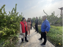 在科技局相关负责同志、金山镇负责农业的副镇长的陪同下,李鸿筠和董朝菊先参观了佛手柑种植基地,期间听取了公司负责人周康均对公司基本情况的介绍。公司现有佛手柑面积3000余亩,目前已经有1000多亩开始挂果。佛手柑的销售情况良好,佛手柑主要用作制干片并销往药厂,公司目前配有自己的烤房,能满足当前的干片生产需要,后期大片佛手柑投产后,还会新增烤房。除了制干,今年公司还向盒马生鲜销售了几十吨优质鲜果,价格看好。佛手柑的关键栽培技术如修剪等主要依靠外请的专业技术人员。