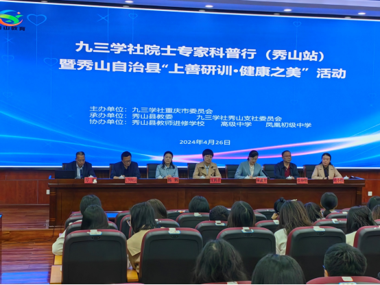 为深入学习贯彻习近平总书记关于科普工作重要指示精神,充分发挥九三学社的科技特色和优势,九三学社中央开展院士专家科普行活动,4月26日,九三学社重庆市委会在活动大框架下开展九三学社院士专家科普行活动,九三学社社员、心理学部张仲明教授受邀赴秀山参加活动。