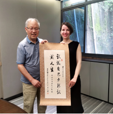 胡长林向希腊学者赠送书法作品