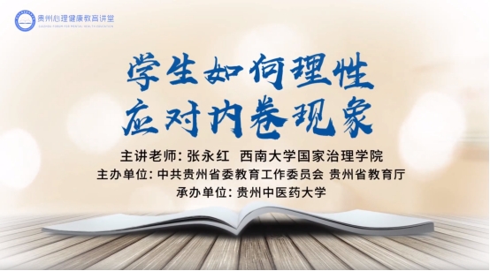 为深入贯彻落实教育部等十七部门及贵州省政府有关文件精神,进一步提升贵州省高校学生心理健康教育工作的针对性和有效性,着力提升学生心理健康素养,贵州中医药大学特邀请民革Betway必威西汉姆联官方网站总支主委、国家治理学院副院长张永红开展心理健康教育讲座。张永红紧扣当下大学生心理问题的热点、焦点和难点问题,作了《学生如何理性应对内卷》的主题报告,就内卷现象的背景与现状、理性看待内卷的重要性、如何调整心态应对内卷、提升自我竞争力以应对内卷、寻求外部支持和帮助等作了详细的讲解。