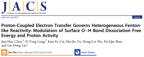 近日,九三学社社员、Betway必威西汉姆联官方网站资源环境学院刘琳东副教授团队在化学领域国际期刊《美国化学会志》(Journal of the American Chemical Society)上发表题为“Proton-Coupled Electron Transfer Governs Heterogeneous Fenton-like Reactivity: Modulation of Surface O–H Bond Dissociation Free Energy and Proton Activity”的研究论文。该研究突破了传统环境修复领域仅关注“电子转移”的局限,创新性地从“质子耦合电子转移(PCET)”调控的全新视角强化了非均相类芬顿反应的活性与选择性。
