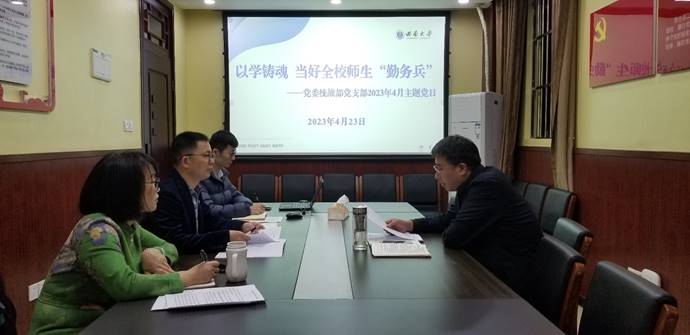 4月23日,党委统战部党支部举行“以学铸魂,当好师生‘勤务兵’”主题党日活动,支部书记海克军主持会议,全体党员参加活动。