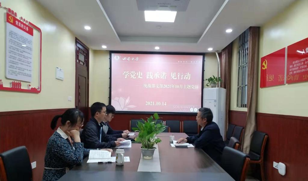 10月14日下午,党委统战部支部举行“学党史 践承诺 见行动”主题党日活动,支部书记周文全主持会议,全体党员参加活动。