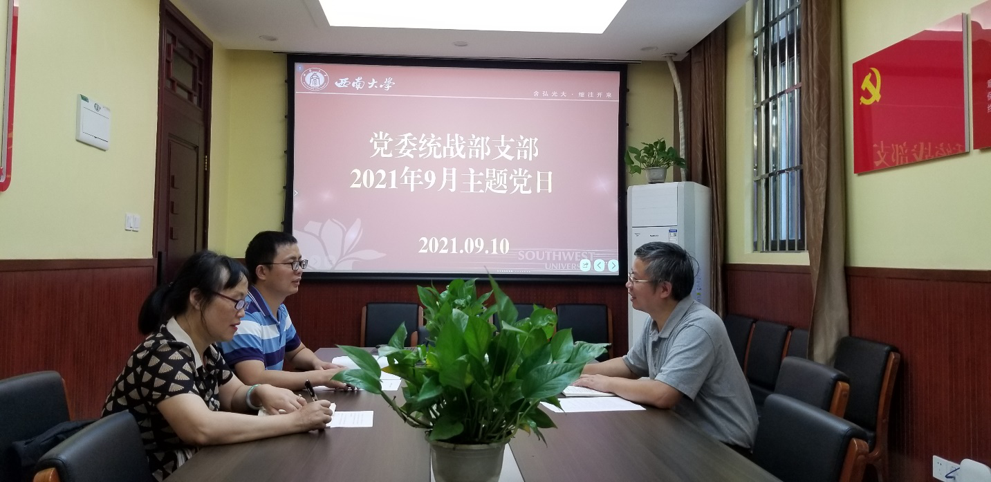9月10日下午,党委统战部党支部举行“学习贯彻 ‘七一’讲话精神 赓续共产党人精神血脉”主题党日活动,支部书记周文全主持会议,全体在校党员参加活动。