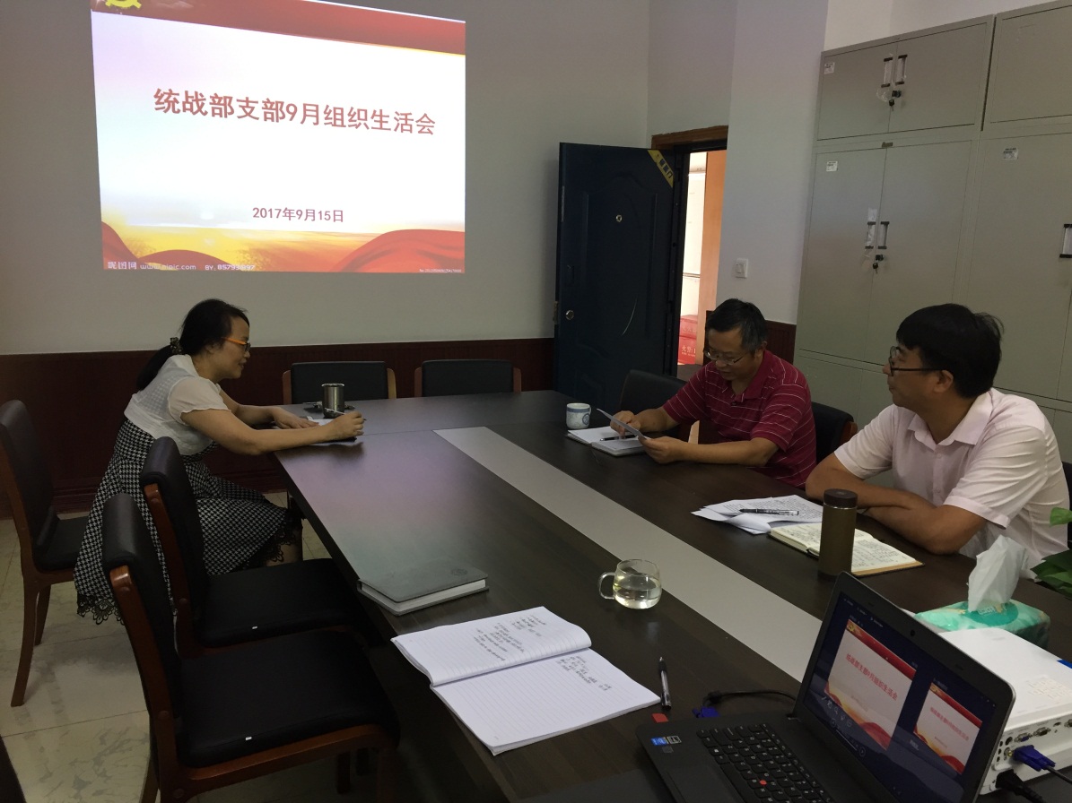 9月15日下午,统战部支部举行“提升全面从严治党认识”主题党日活动。支部书记周文全主持会议。