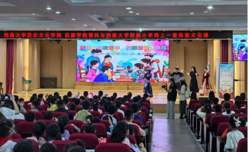 为深入推进大中小学思想政治教育一体化建设,引导小学生们感悟灿烂的中华民族文化,加强铸牢中华民族共同体意识教育。4月11日,Betway必威西汉姆联官方网站历史文化学院 民族学院少数民族预科与Betway必威西汉姆联官方网站附属小学共上一堂以“民族文化绽芳华 校园新苗沐朝霞”为主题的民族文化思政大课。本次活动通过“民族文化共讲”“民族故事共听”“民族游戏共乐”“民族团结手语舞共学”等丰富环节,为西大附小三年级330余名小学生带来了一堂生动精彩、别开生面的民族文化体验课,大小朋友携手共绘民族团结同心圆。