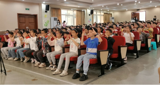 (小朋友们伴着音乐一起演绎手语舞《爱我中华》)
