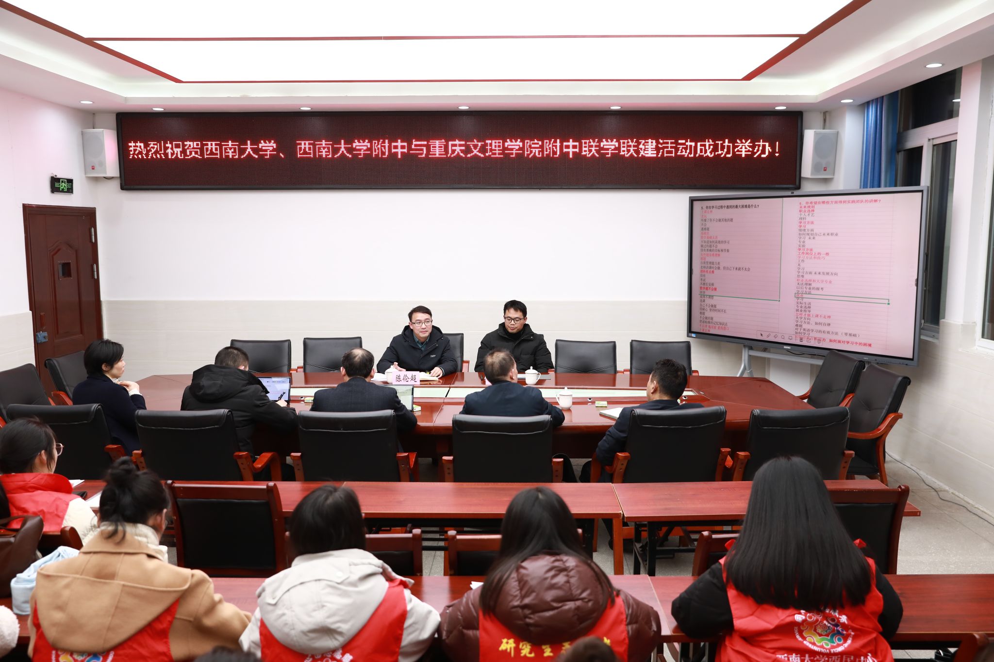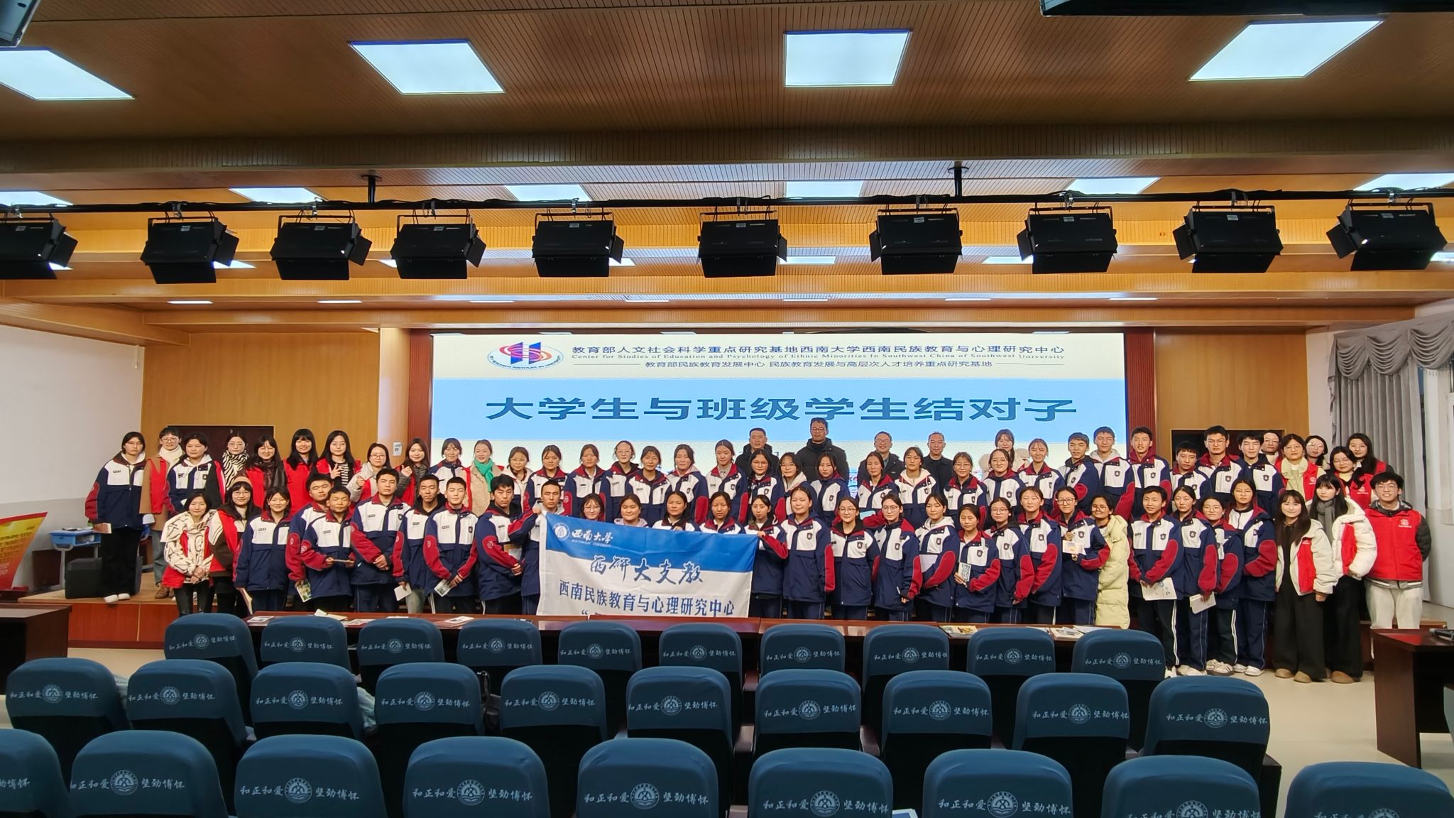 为深入推进扎根学校建设,1月7日,Betway必威西汉姆联官方网站西南民族教育与心理研究中心(以下简称“中心”)“同心圆”团队,会同Betway必威西汉姆联官方网站附属中学(以下简称“西大附中”)干部教师代表,共同组成实践团队,赴扎根学校联盟成员、荣获全国民族团结进步模范集体称号的重庆文理学院附属中学(以下简称“重庆文理附中”),开展以“牵手青海班·共铸同心圆”为主题的联学共建实践活动。