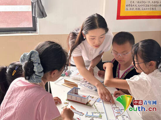 研支团成员指导孩子们搭建民族建筑积木