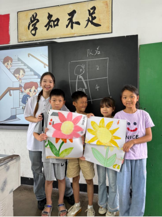 (2024年8月前往四川宜宾竹海镇中心小学参加美育公益志愿服务活动时和学生们的合照)
